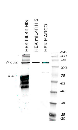 - Ab used Anti-IL-4I1/LAO Abcam (Cat. ab222102) 0.567mg/ml