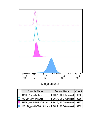 | Flow cytometry (FC) | 30ul supernatant/100ul PBS | Working | Flow cytometry |